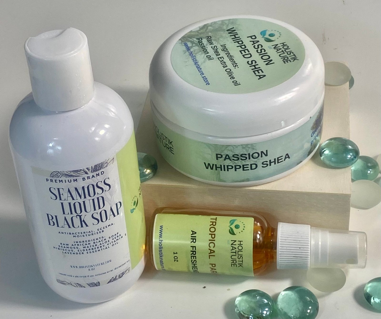Combo Passion Whipped Shea SEAMOSS Liquid Black Soap 8oz with Tropical Paradise Air Freshener